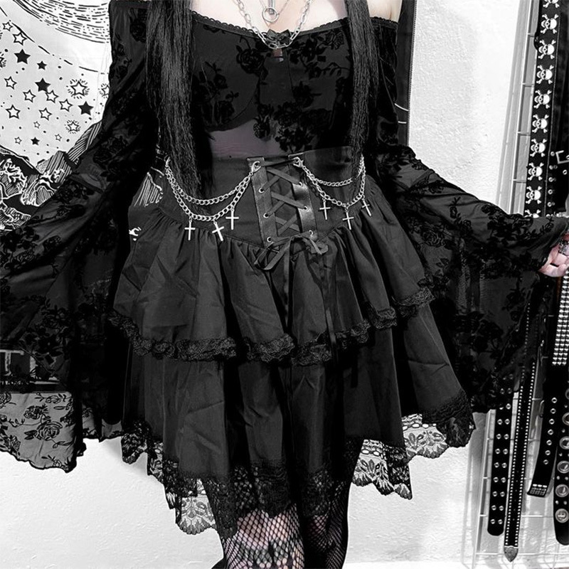 Crafted from high-quality, durable fabric, this skirt offers a flattering fit while ensuring all-day comfort. The corset-inspired waist enhances your silhouette, while the chain and cross embellishments add a touch of edgy allure. Perfect for gothic events, concerts, or creating unique streetwear looks.