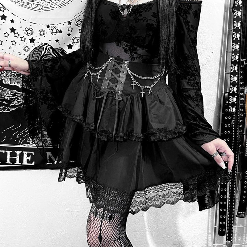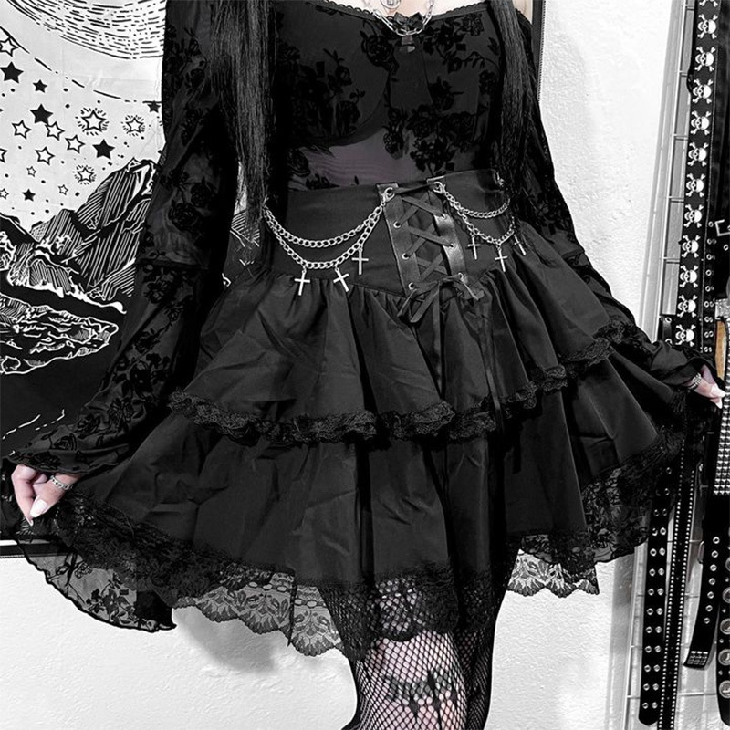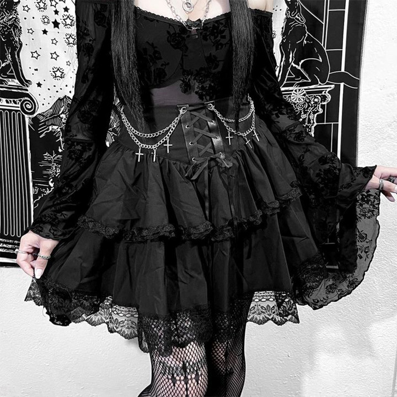 Dark Gothic Chain Cross Corset Skirt