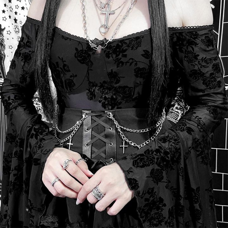 Dark Gothic Chain Cross Corset Skirt – Edgy Elegance with a Gothic Twist